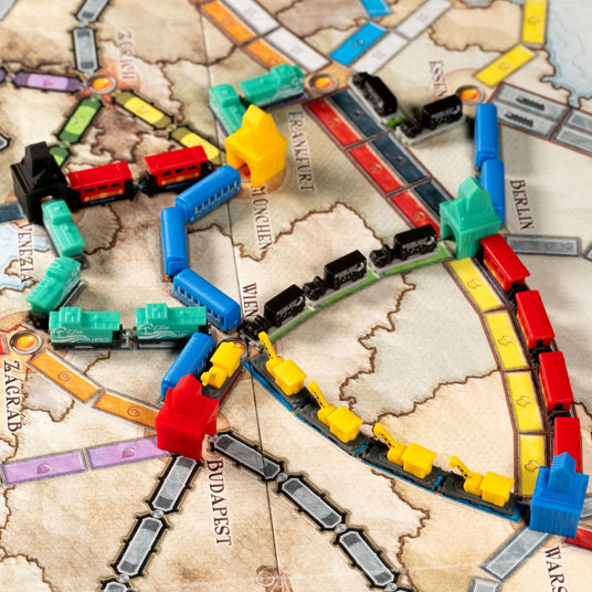 Ticket to Ride is a popular, award-winning board game where players compete to build the longest and most strategic train routes across a map. Using coloured train cards, players claim railway routes that connect various cities, earning points for completing routes and fulfilling secret destination tickets. With simple rules but a deep strategy, Ticket to Ride is accessible to beginners while offering engaging gameplay for experienced players.