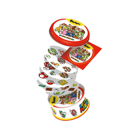 In Dobble, there is only one common symbol between two cards. Be the first to spot the match to win! This “Super Mario" edition of Dobble includes many symbols from the iconic Super Mario video games The small tin box makes it the perfect game to bring along and play anywhere.