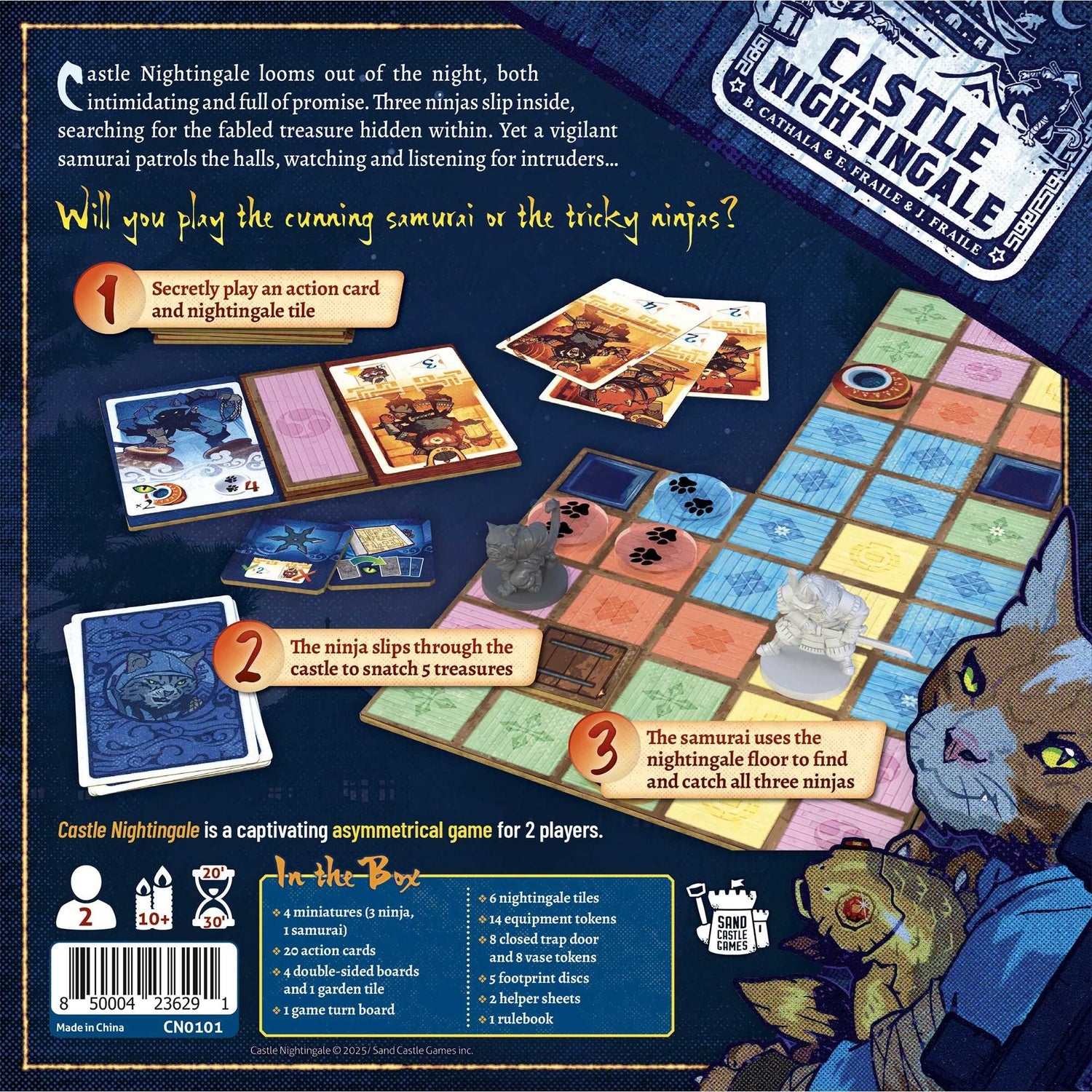 Castle Nightingale looms out of the night, both intimidating and full of promise. Three ninjas slip inside, searching for the fabled treasure hidden within. Yet a vigilant samurai patrols the halls, watching and listening for intruders.