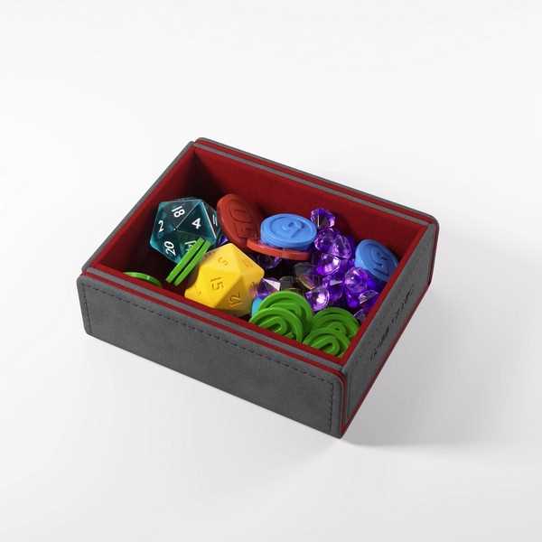 Safely store your most precious tokens, cards, or dice in this elegant premium token box! The Token Keep features Gamegenic’s signature “Convertible System”: the removable cover clips onto the bottom, saving precious space on the gaming table when opened. This makes the Token Keep fully usable during gameplay. Powerful magnets provide a secure closure. The Token Keep is designed to hold a variety of different tokens, dice, other items, and even 40 double-sleeved, 50 single-sleeved, or 80 unsleeved cards. It is perfect for a variety of board games, TCGs, and LCGs.