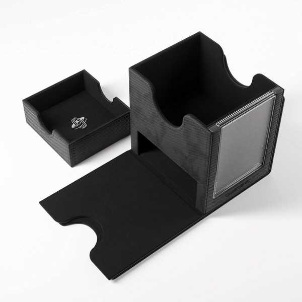 The Sidekick PRO 100+ XL is a premium deck box, specifically designed for the widely popular Magic: The Gathering™ format “Commander”. It includes a Slide Card Case for displaying the Commander or top card with additional UV protection. Due to the innovative placement, the stored deck can be easily identified without opening the box. The Slide Card Case can also be detached and used during gameplay. The integrated drawer holds additional tokens and other accessories.