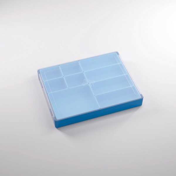 “Are you ready for a revolution in token boxes?” Save precious space on your board game table with Gamegenic's revolutionary, convertible, Token Silo. Just clip the cover to the bottom of the box for easy access to all your tokens. This unique, convertible box stores and organizes a variety of tokens, cards, dials, dice, and many other items. The Token Silo comes with 9 trays in 3 different sizes, that are fully removable to keep your accessories handy during the game. The boxes can be stacked several times and are made of durable, robust material. It is available in several vibrant colors which can be mixed and matched.