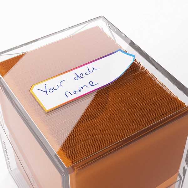 The Bastion 100+ XL is a very compact and rock-solid deck box to safely protect 100+ double-sleeved cards in Thick Inner Sleeves. Due to translucent materials and smart positioning of the closing flaps, the top or Commander card is fully visible from the outside without opening the box. The innovative secure click-lock mechanism protects your deck while still allowing easy access. The Bastion consists of 2 symmetrical parts that easily convert into a card pile and discard pile holder. It is perfect for a huge variety of trading card games.