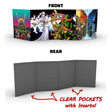 A Game Master screen featuring the classic painting by Kevin Eastman used for the wraparound cover of the original TMNT Adventures sourcebook. This coveted item is remastered and back in print by popular demand! Clear plastic pockets with GM inserts included!