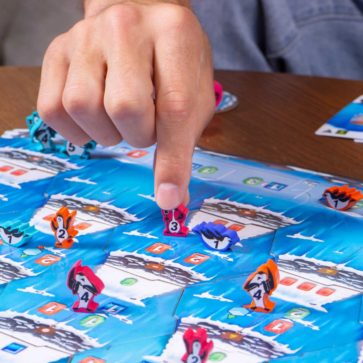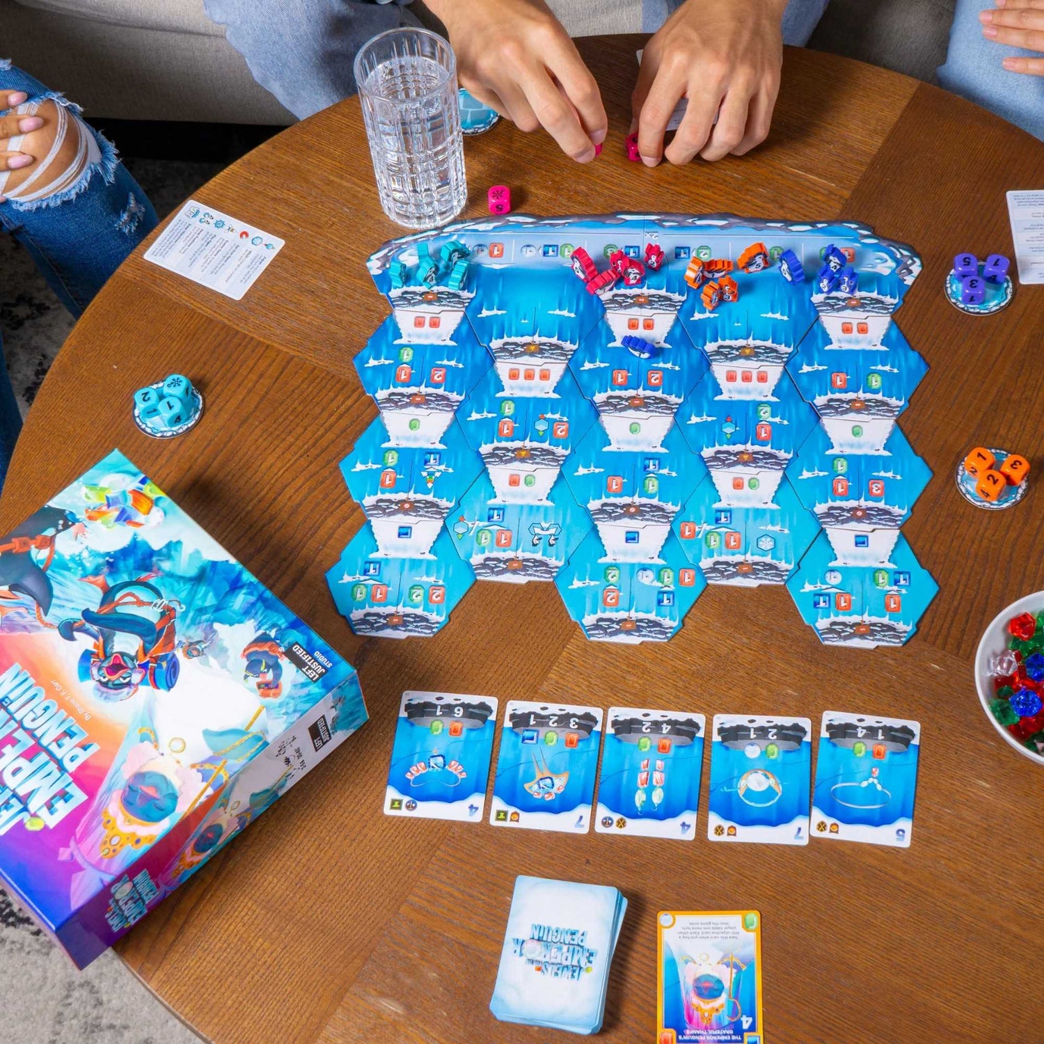 The Emperor Penguin loooooves jewelry, so your Penguin Guild must scale icy cliffs to collect gems and assemble crown jewels for His Majesty. Spend dice cleverly to bump, slide, and trigger just the right special abilities. Features approachable gameplay, engaging strategy, delightful meeples, captivating translucent gems, and a modular gameboard for outstanding replayability.