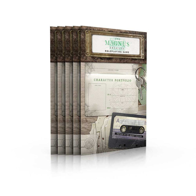 A pack of five Character Portfolios for The Magnus Archives Roleplaying Game—enough for every character at the game table.