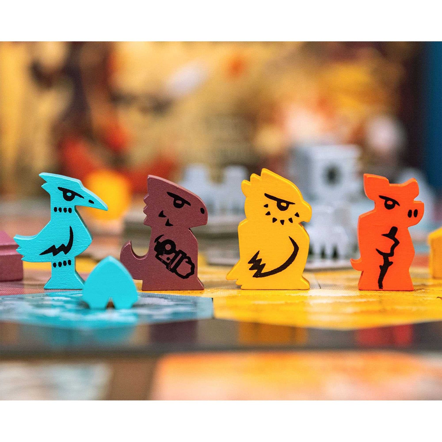 Area control meets fantasy adventure in this new cooperative board game game from T.L. Simons, creator of Bloc by Bloc, Henry Audubon, designer of PARKS, and illustrator Meg Lemieur. Play as one of four unique animal factions to clear pollution, fight mechs, breach walls, build camps, and rewild factories across a modular map that changes with each game.
