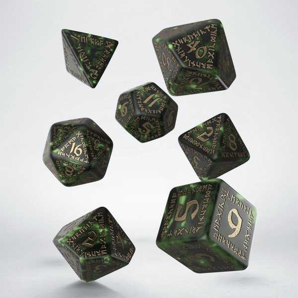 Q-Workshop Runic Bottle-green & gold Dice Set