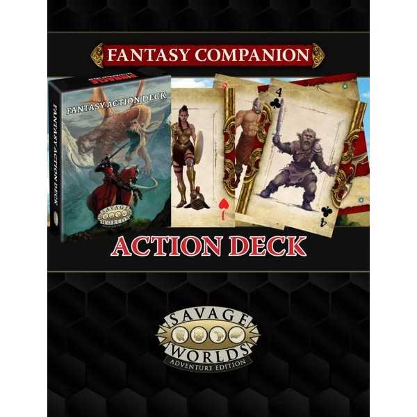 54 oversized 3.5? x 5? playing cards to help keep track of the action around the table featuring art from the Fantasy Companion, perfect for any medieval fantasy games. The Action Deck is used to count down initiative, determine random events, and much more.