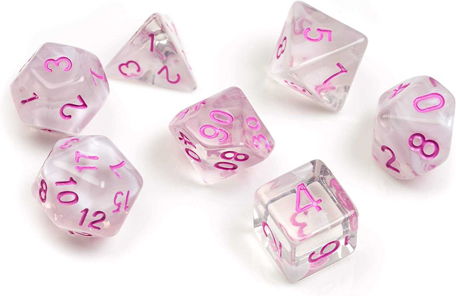 Set of 7 polyhedral dice plus 1 extra D20. Packaged in a flat-bottom tube, so you can easily carry and store your dice.