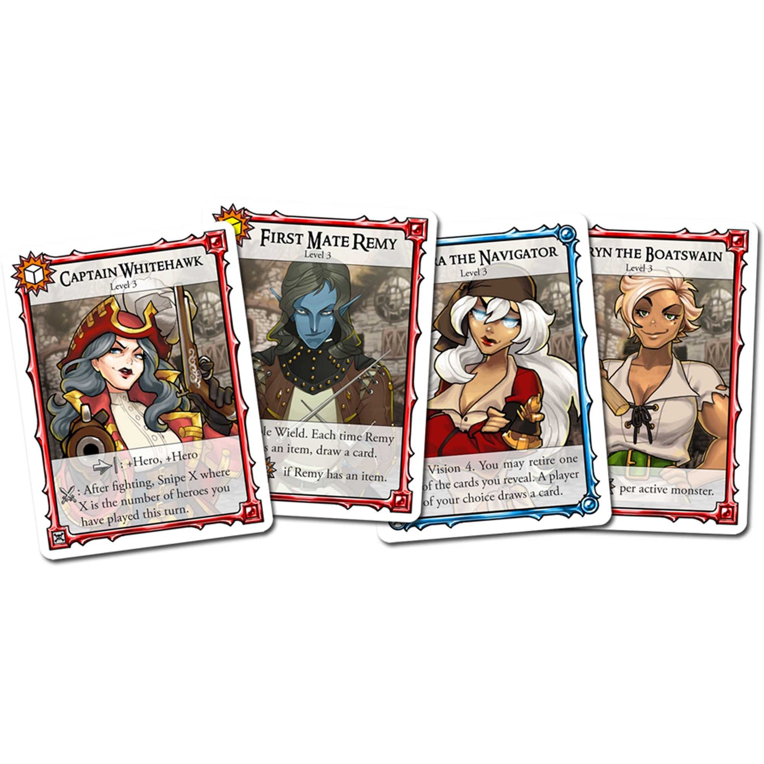 Team up and fight off dastardly pirate captains and their host of salty sea dogs in this expansion to the cooperative fantasy deckbuilding game! Features four new player heroes and starting decks, as well as new monsters, mechanics, recruits and scenarios.