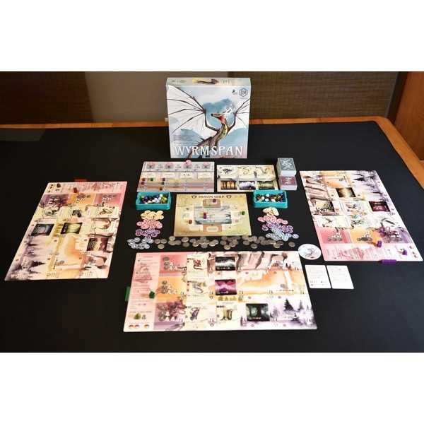 You are an amateur dracologist in the world of Wyrmspan, a place where dragons of all shapes, sizes, and colors roam the skies. Excavate a hidden labyrinth you recently unearthed on your land and entice these beautiful creatures to roost in the sanctuary of your caves. During a game of Wyrmspan, you will build a sanctuary for dragons of all shapes and sizes. Your sanctuary begins with 3 excavated spaces—the leftmost space in your Crimson Cavern, your Golden Grotto, and your Amethyst Abyss. Over the course of the game, you will excavate additional spaces in your sanctuary and entice dragons to live there, chaining together powerful abilities and earning the favor of the Dragon Guild.