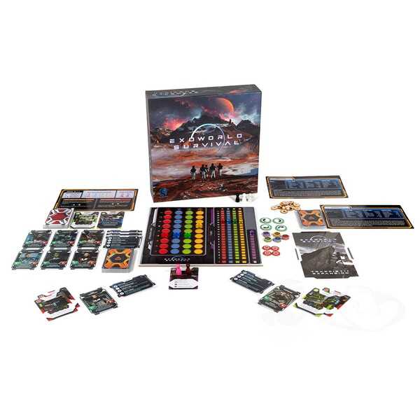Exoworld Survival is a cooperative colony-building game, set in the alien landscape of a new planet. Each turn, you use your character actions to expand your colony with new modules, manage unique crises, and achieve self-sufficiency on a variety of unique exoplanets. The cooperative game has endless replayablity with a wide variety of exoplanet scenarios, characters, and modules.