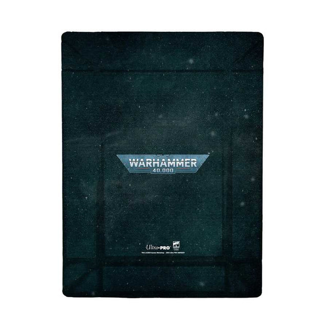 “In the grim darkness of the far future there is only war”, so prepare for battle with tabletop accessories for Warhammer 40,000! This Universal Folding Dice Tray offers a safe space for rolling your RPG dice when commanding your armies. Using the small magnets inside each corner, you can easily create an instant dice rolling area in seconds: simply pop up the side walls and you’re ready to roll! No bulky clasps or snaps needed. The reversible design features a printed leatherette with metal emblem accents on one side, and the iconic grimdark war quote on a pattern of spot UV faction symbols on the other. Sized no bigger than a sheet of paper (8.5 in. x 11 in.) when folded flat, you can easily take your dice rolling tray with you on the go inside your Datasheet Folio or Codex Book Folio.