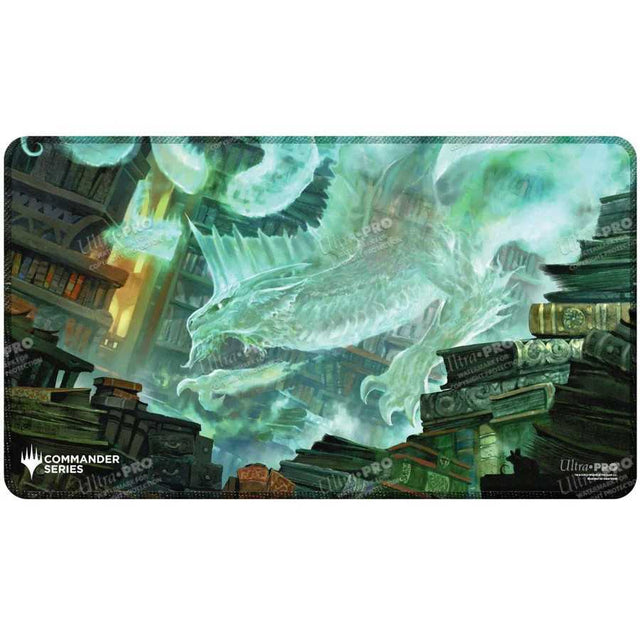 Commander Series Stitched Playmats feature popular artwork of your favorite Commander Series #5 - Three Color Wedge - Miirym Stitched Playmat for Magic: The Gathering! Made with a soft fabric top to reduce damage to cards during play and a non-slip rubber backing to keep the playmat from shifting during use, playmats enhance the gameplay experience. The stitched edges offer an added premium feel. With dimensions of approximately 24 in. x 13.5 in., a playmat also makes an excellent oversize mousepad for home or office.
