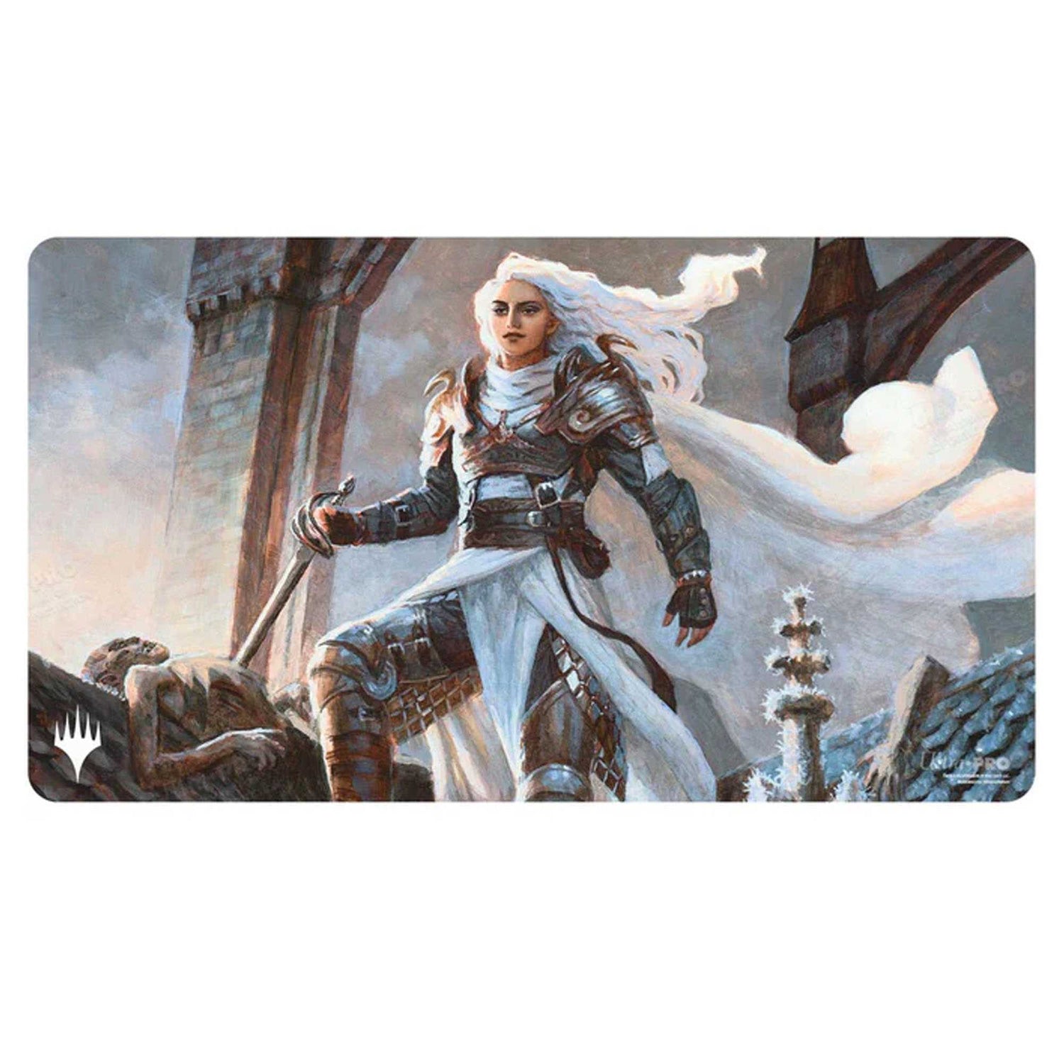Playmats feature popular Magic: The Gathering artwork, and black stitched edges for an added premium feel. Made with a soft fabric top to reduce damage to cards during play and a non-slip rubber backing to keep the playmat from shifting during use, playmats enhance the gameplay experience. With dimensions of approximately 24 in. x 13.5 in., a playmat also makes an excellent oversize mousepad for home or office. Officially licensed Stitched Edge Playmat for Magic: The Gathering Innistrad RemasteredFeatures exclusive artwork of Thalia, Heretic Cathar by Winona NelsonApproximately 24 in. x 13.5 in. and lies flat Black stitched edges offer an added premium feel Soft fabric top with non-slip rubber backing to keep playmat from shifting