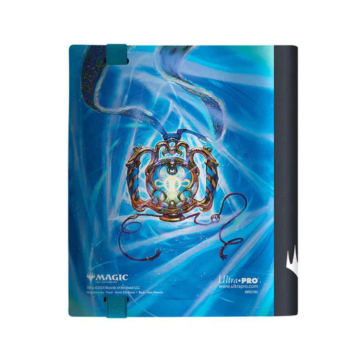 The PRO-Binder for Magic: The Gathering features a vibrant, full-art cover and elastic strap closure. Side-loading pockets and low-friction material help keep cards in place. Up to 160 cards can be stored safely in archival-safe, acid-free, non-PVC pages. Officially licensed 4-Pocket PRO-Binder for Magic: The Gathering Aetherdrift Features exclusive artwork of Chandra Pre-Release Key Art by Devin Elle Kurtz on front and The Aetherspark by Ivan Shavrin on backHolds up to 160 standard size cardsLow-friction material and side-loading pockets help keep cards in placeBlack elastic strap closure