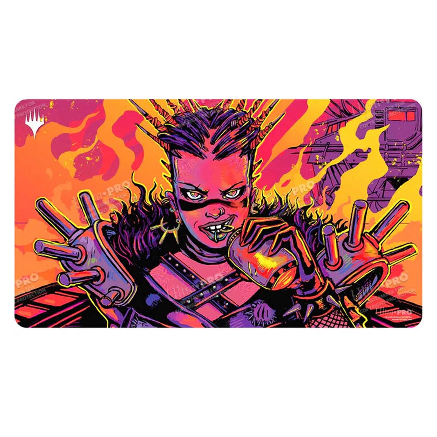Playmats feature popular Magic: The Gathering artwork. Made with a soft fabric top to reduce damage to cards during play and a non-slip rubber backing to keep the playmat from shifting during use, playmats enhance the gameplay experience. With dimensions of approximately 24 in. x 13.5 in., a playmat also makes an excellent oversize mousepad for home or office. Officially licensed Playmat for Magic: The Gathering Aetherdrift Features exclusive artwork of The Endriders: Far Fortune, End Boss by Justine JonesApproximately 24 in. x 13.5 in. and lies flatSoft fabric top helps protect cards during gameplayNon-slip rubber backing keeps the playmatfrom shifting during use