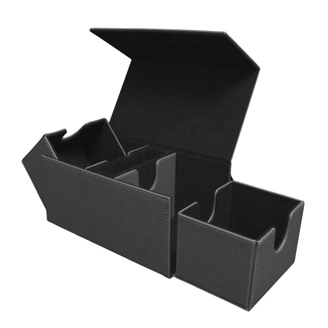 - Has 2 compartments that hold up to 100 double sleeved cards each.
