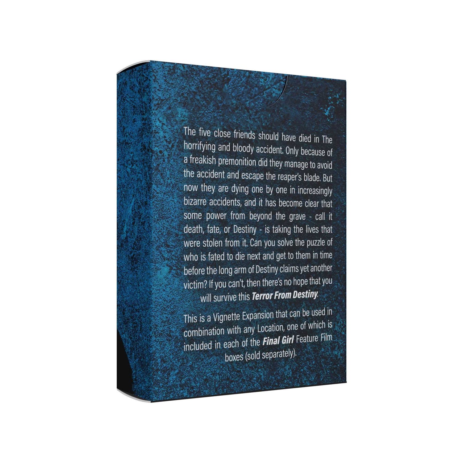 The Terror From Destiny Vignette Box will add a whole new spin to your Final Girl gameplay, introducing a brand new goal. Perhaps you’ll allow the Fated Victims to die and instead spend all your Premonition cards on figuring out what the Fated Consequences are, hoping you can pay Destiny’s costs and somehow survive the final accounting at the end of the game. Or maybe you’ll roll the dice and start saving the Fated Victims right from the get go, gambling that maybe (just maybe) you saved them in the right order. Of course, Destiny will have its own Dark Power cards to throw into the mix, screwing with your carefully laid plans. In any case, Terror From Destiny will be a fantastic and unique addition to your Final Girl library.