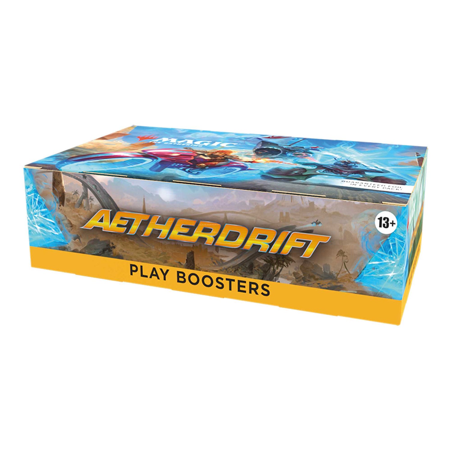 Start your engines for a high-octane death race across the Multiverse! Swerve through three planes of mayhem, dodging dangerous obstacles and rival racers along the way. This Aetherdrift Play Booster Box containing 30 Play Boosters, perfect for both Limited play and opening packs just for fun. Each Play Booster contains 14 Magic: The Gathering cards and 1 Token or Art card, including 1–4 cards of rarity Rare or higher and 3–5 Uncommon, 6–9 Common, and 1 Land cards. 1 card of any rarity is Traditional Foil. A Traditional Foil Land replaces a Land in 20% of boosters.