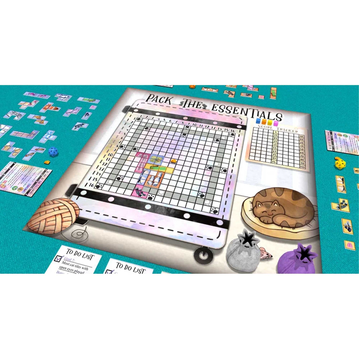 Who wouldn’t want to avoid those pesky pet check-in fees? In Pack the Essentials, players take on the role of travelers who want to fit as many of their adorable polyomino shaped cats as possible in their suitcase. For 1-4 players. Play against your friends or play solo against the Cat Lady.