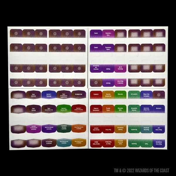 This pack contains 92 acrylic tabs designed to help busy dungeon masters keep track of important sections like magic items, treasure, and even blank tabs for complete customization.